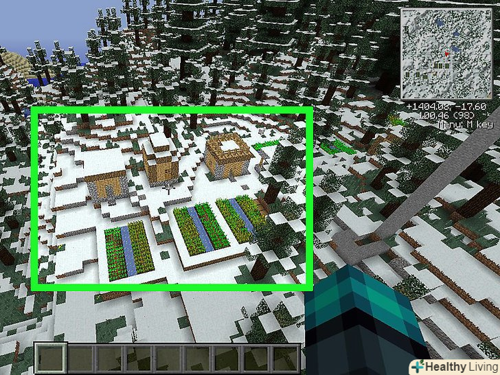 Перевірте весь біом.села можуть перебувати на будь-якій ділянці біома, так що обстежте його повністю, перш ніж перейти до наступного місця.