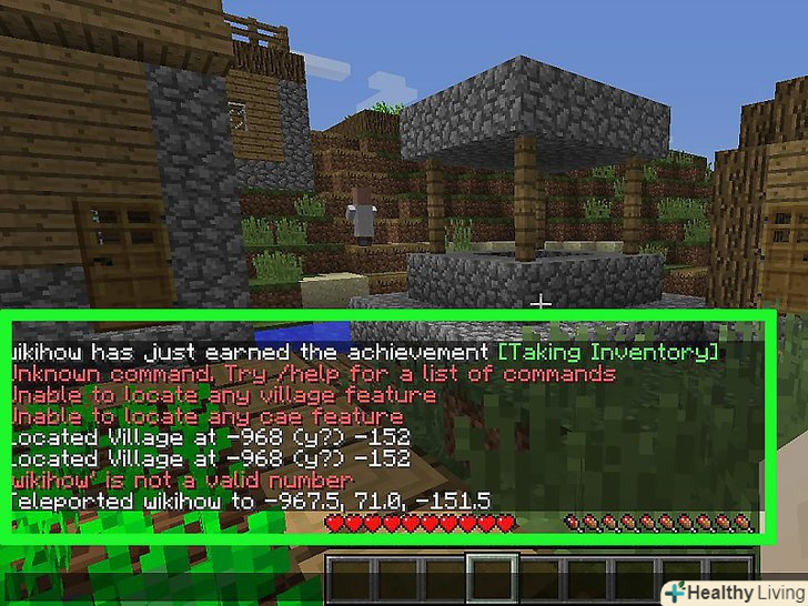 Перевірте інше село, якщо першої не виявилося на місці. Пошуковик відобразить всі можливі місцезнаходження сіл, але в самій грі з'являться лише дві третини з них. Це означає, що за отриманими координатами села може і не виявитися. В такому випадку, просто перейдіть до наступних координатам.- У консольних версіях гри вам можуть зустрітися досить дивні села. Так, наприклад, в одній з них не буде ніяких будинків, а лише один колодязь. Пошуковик сіл може не помітити деякі села в консольній версії гри. Тому пошук сіл в консольній версії більш проблематичний.