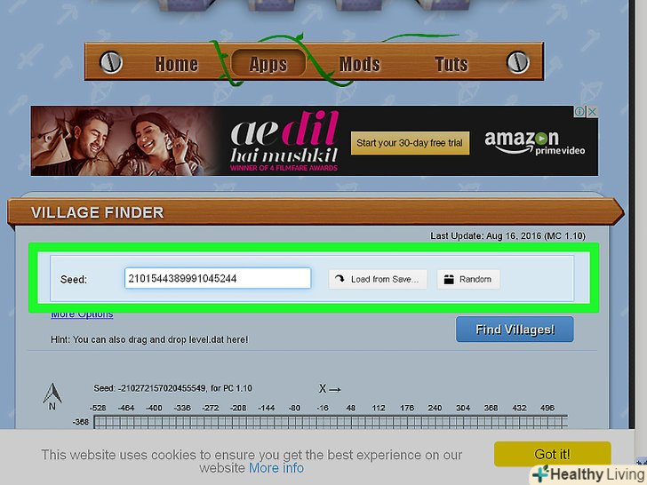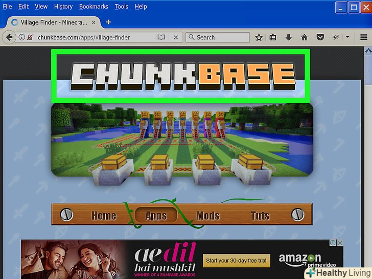 Знайдіть в Інтернеті інструмент для пошуку села.фанати гри придумали інструмент, який аналізує ваш Сід або збереження і знаходить для вас села. Потім можна взяти отримані координати і використовувати їх для пошуку села в своїй грі. Відзначимо, що точність подібних програм становить близько 66%, так що одне село з трьох не буде перебувати там, куди вказала вам програма.- Одним з найбільш популярних інструментів для пошуку сіл є Chunkbase. Щоб скористатися ним, пройдіть за цим посиланням:chunkbase.com/apps/village-finder . запустіть оновлений браузер, наприклад, Chrome, щоб скористатися всіма функціями пошуковика.