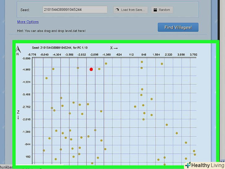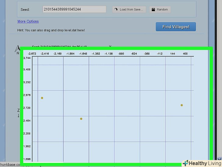 Запам'ятайте розташування сіл, щоб потім перевірити їх наявність в грі.змінюйте координати, проводячи курсором миші по карті. Наведіть мишкою на одну з точок, щоб побачити її координати в грі. Так як на карті відображені всі можливі місцезнаходження сіл, вам варто запам'ятати кілька місць на той випадок, якщо ці села не були згенеровані.