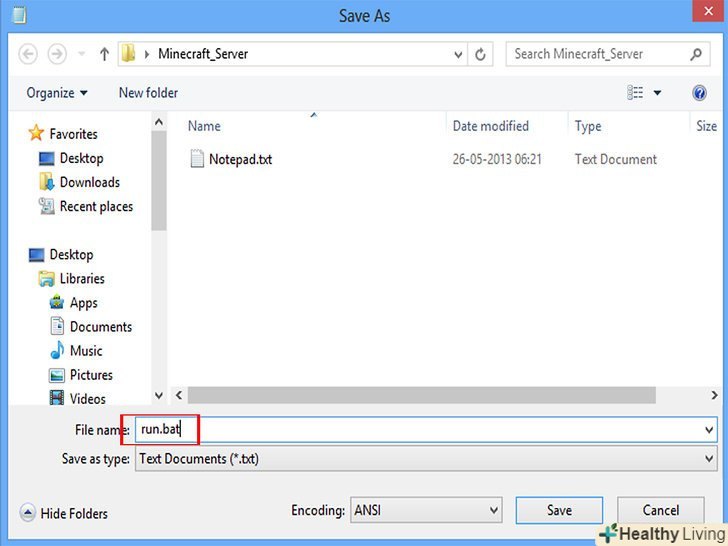 У блокноті натисніть "Файл" gt;»Зберегти як".у меню "Тип файлу" виберіть "Усі файли«, а в рядку» Ім'я файлу «введіть" run.bat».