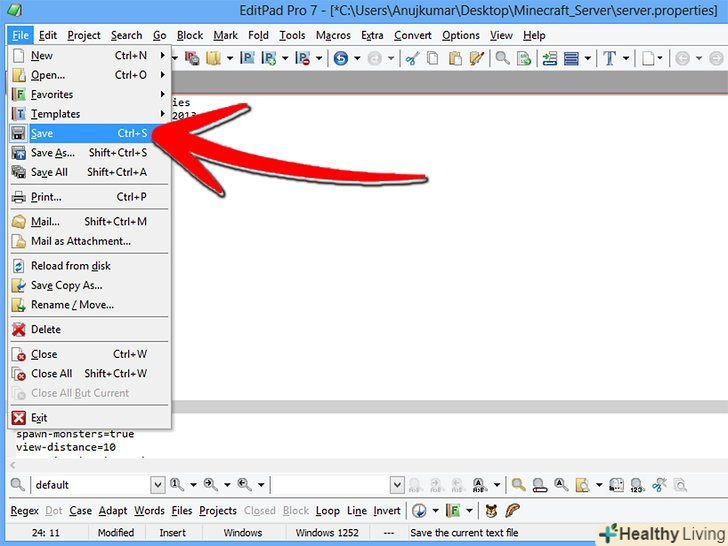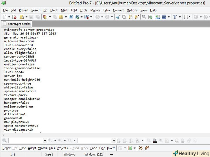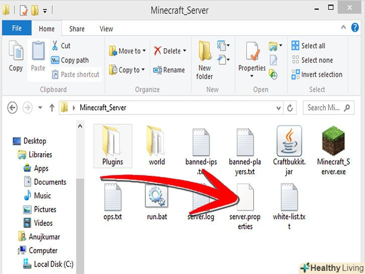 Тепер плагін Essentials встановлений на сервері.перейдіть в основну папку з файлами сервера, а потім знайдіть і відкрийте файл " server.properties». Можливо, відкриється спливаюче вікно, в якому буде запропоновано знайти програму для запуску файлу-в цьому випадку просто натисніть на опцію, щоб вибрати одну з програм, а потім клацніть по «ОК» і виберіть «Блокнот».