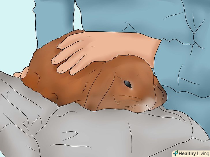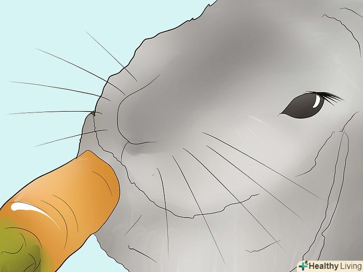 Годуйте кролика. у кроликів молодше 7 місяців повинен бути необмежений доступ до гранул люцерни, сіна люцерни і чистій воді. Кролики старше 7 місяців повинні отримувати 1/4 чашки (62,5 мл) гранульованої люцерни, трохи овочів, мати в необмеженій кількості сіно і чисту воду. Фрукти слід давати зрідка, так як в них високий вміст цукру для регулярного годування. До безпечних овочів можна віднести китайську капусту, базилік, пагони гірчиці, салат (не качанний), латук, вершки моркви (морква цукриста і повинна даватися рідко), листову капусту. До здорових фруктів можна віднести чорницю, яблука (з віддаленими плодоніжками і насінням), дині, персики, ананаси, сливи, банани і полуницю. [2] Поговоріть з досвідченим власником кроликів або ветеринаром для отримання більш детальної інформації.