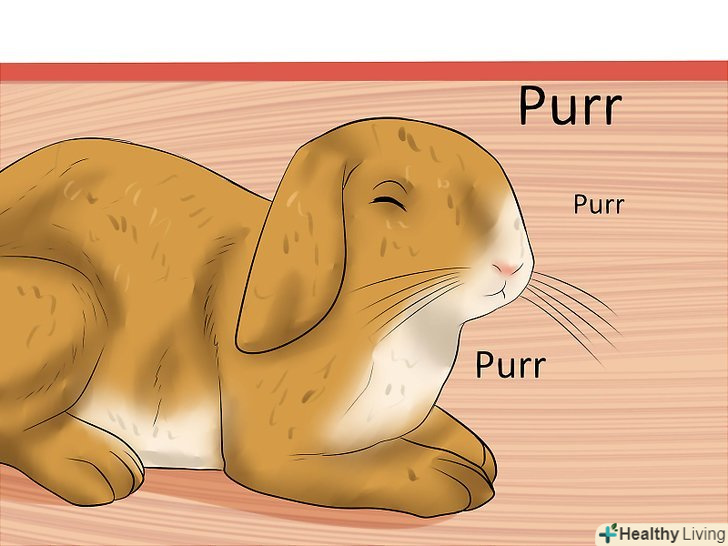 Зверніть увагу на бурчання. Кролики, як і кішки, бурчать, коли їм добре. Цей звук дасть вам зрозуміти, що кролик радіє, і ви зможете повторити дію, яке сподобалося вихованцеві. Кролики видають цей звук зубами, тому, прислухаючись, шукайте звук в районі рота. [11]