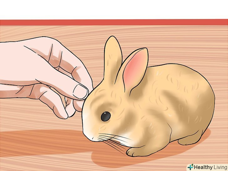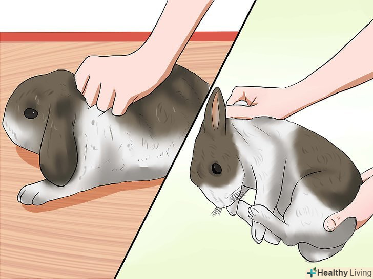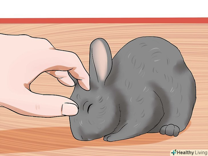 - Коли кролик буде дозволяти вам чіпати голову, спробуйте чіпати спинку або лапи. Якщо кролику сподобаються погладжування по голові, ними можна винагороджувати кролика за те, що він дає вам торкатися до інших частин тіла.