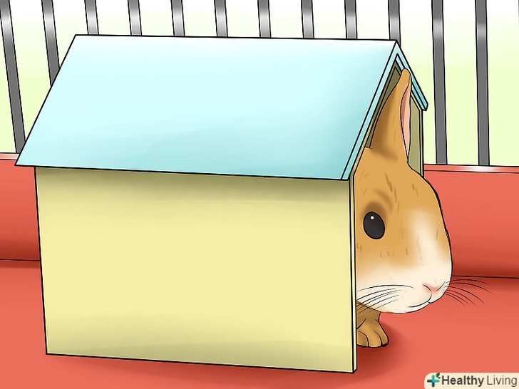 - Щоб захистити приміщення, сховайте дроти, приберіть рослини, токсичні для кроликів (список можна знайти на http://www.zooclub.ru/mouse/zayc/54.shtml ). Наприклад, такі рослини, як нарциси, іриси, листя помідорів і омела, небезпечні для здоров'я кроликів. Слід також закрити всі предмети, які кролик може погризти (наприклад, плінтуси). Спробуйте встановити переносну огорожу, яка обмежувала б пересування кролика. [7]