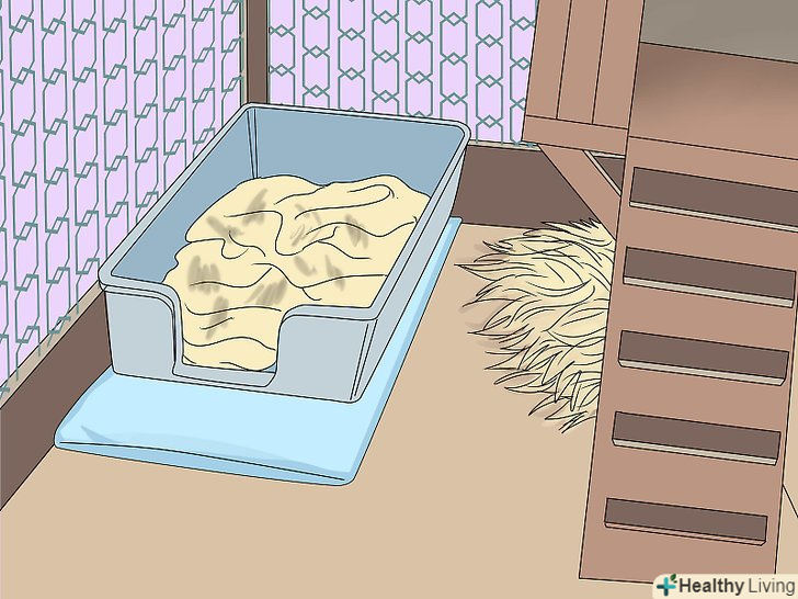 Помістіть трохи брудної підстилки в придбаний Вами для кролика туалетний лоток. не забудьте почистити іншу клітку після перекладання брудної підстилки.
