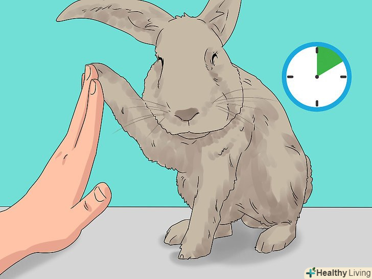 Приділіть дресируванню достатньо часу. для отримання найкращих результатів спочатку щодня виділяйте трохи часу на навчання кролика. Два або три невеликих уроку в день тривалістю по 5-10 хвилин дозволять підтримувати у кролика інтерес до навчання. [2]