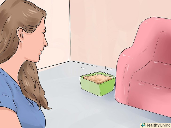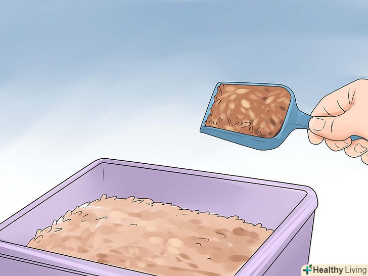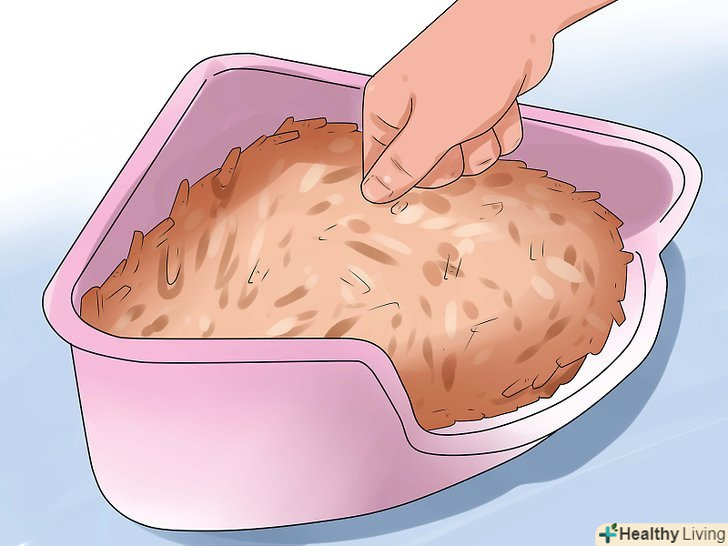 Помістіть в туалетний лоток кілька горошин кролячого посліду. Зберіть трохи кролячого посліду і помістіть його в туалетний лоток. Це додасть лотку частину кролячого запаху, що буде натякати вихованцеві про те, що лоток є відповідним місцем для використання його в якості туалету. [9]