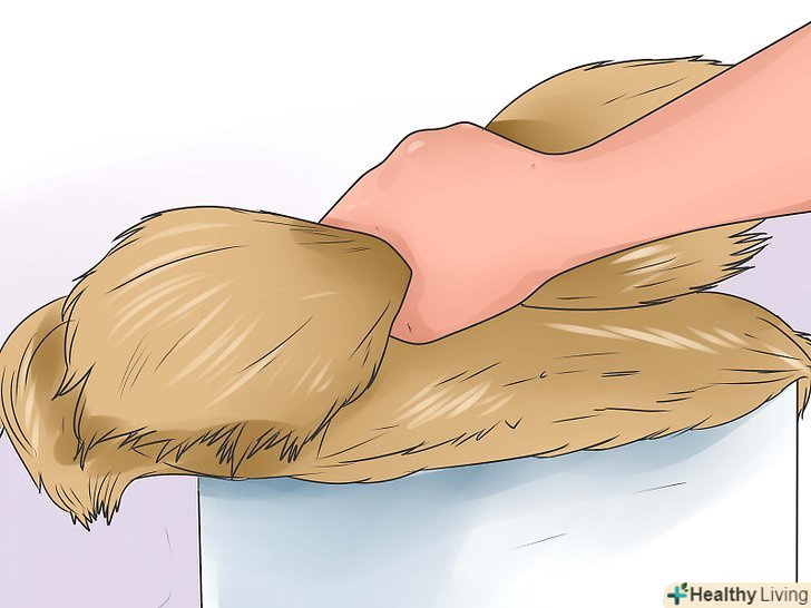 Прибирайте за кроликом його помилки. змиріться з тим, що сталося і добре приберіть за кроликом, щоб він не продовжив ходити в туалет в недозволеному місці. Скористайтеся розчином миючого засобу на біологічній основі і протріть їм забруднене місце за допомогою ганчірочки або губки. Потім приберіть сліди миючого засобу протиранням чистою водою. [18]- Не кричіть на кролика і не карайте його. Кролики не вчаться на покараннях, а тільки починають боятися погано поводиться з ними людини.