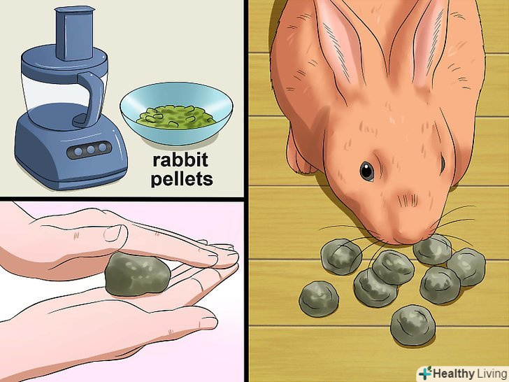 Спробуйте приготувати печиво для кроликів. печиво для кроликів-ще один приголомшливий рецепт ласою випічки для вашого вихованця. Вам знадобиться взяти 1 склянку подрібненого гранульованого корму для кроликів, 1 склянка борошна, 3/4 склянки молока, 1/2 склянки вівсяних пластівців, 1/4 склянки патоки, 1/2 склянки родзинок, 1/2 склянки кукурудзяних пластівців для сніданків і один товчений банан.- Розігрійте духовку до 175 °C. подрібніть гранули кролячого корму в кухонному комбайні до дрібного порошку. Потім змішайте його з борошном.