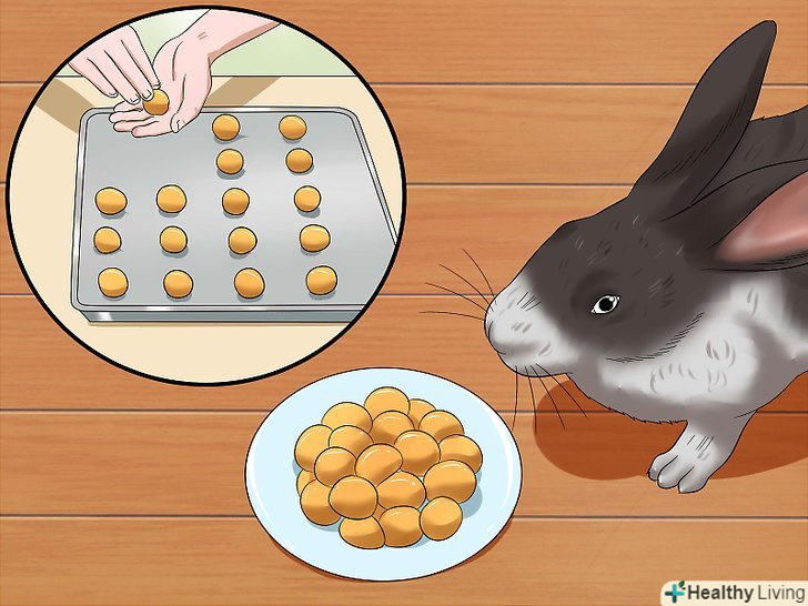 - Запікайте ласощі в духовці при температурі близько 175 °C протягом 20 хвилин. Потім вимкніть духовку і залиште частування остигати в ній же ще приблизно на годину, перш ніж давати його кролику. [3]