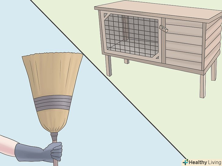 Мийте клітку кроликаЯк мінімум 1-2 рази на тиждень. повністю міняйте всю підстилку.