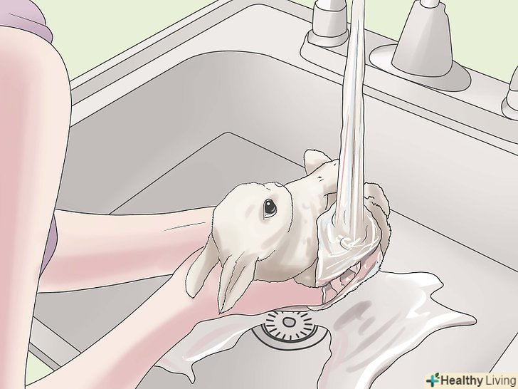 Якщо ваш кролик хворий і у нього брудна попа, акуратно обполосніть брудне місце теплою водою або дитячою вологою серветкою. змочіть руки водою і очистіть сплутаний хутро. Можливо, вам доведеться попросити когось потримати кролика. У тазику або раковині можна помити попу кролику, тільки якщо це крайня необхідність або якщо лікар дав такі вказівки. В іншому випадку ніколи не занурюйте кролика у воду! У природі кролики не контактують з водоймами і водні процедури можуть привести до серйозних проблем зі здоров'ям, наприклад, гіпотермії. До того ж, у кролика може трапитися шок і Серцевий Напад, якщо його опустити в воду.