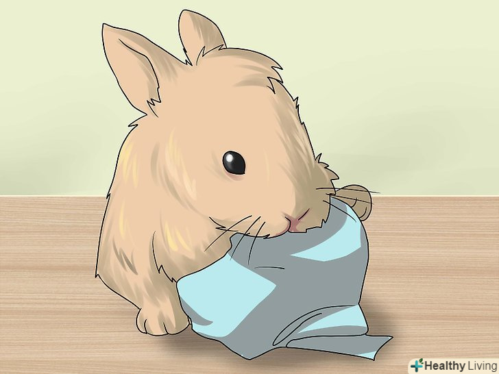 Дайте кролику старий рушник для рук. деяким кроликам подобається рвати тканину, тоді як інші вважають за краще її тільки грудкати і перекладати. Старий рушник для рук або парочка ганчірок дадуть вашому кролику можливість із задоволенням їх комкати і рвати. Тільки стежте за тим, щоб кролик не намагався їсти тканину, інакше він може захворіти або вдавитися. [15]