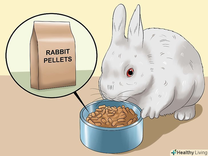 Обмежте кількість гранульованого корму в раціоні кролика. комбікорм може виявитися шкідливим для здоров'я, якщо кролик буде їсти його у великих кількостях. Порція корму повинна становити 2-3% від ваги кролика. [30] розділіть цю кількість навпіл: дайте одну половину вранці, а другу ввечері. [31]- Надмірна кількість гранульованого корму в раціоні може призвести до ожиріння. [32]