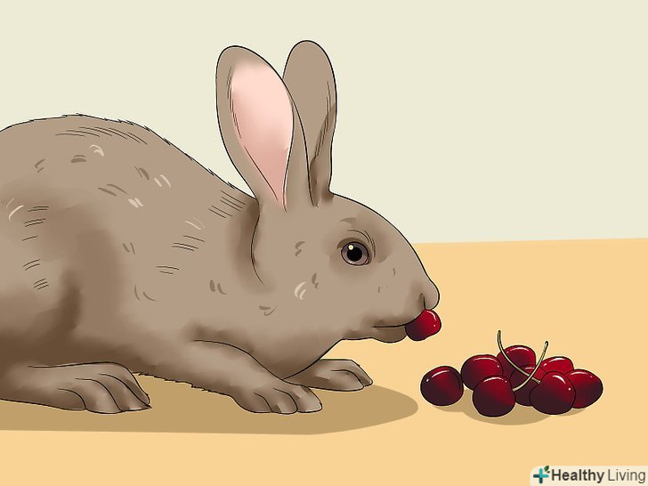 Час від часу давайте кролику свіжі фрукти. Кролики люблять солодке, [44] тому вони із задоволенням їдять фрукти. Однак через високий вміст цукру фрукти можна давати тільки зрідка в якості ласощів. Кролику слід давати не більше 0,5 - 1 столових ложок фруктів на 1 кілограма ваги. [45]- Кроликам можна давати манго, банани, папайю, вишню. [46]