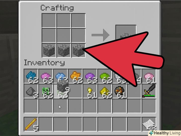 Зберіть три бруківки.для цього вдарте по каменю киркою. Бруківка можна знайти:- В підземеллях