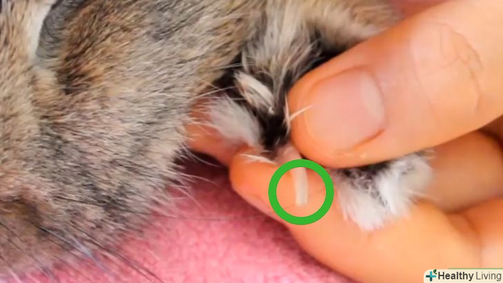 Обрізайте самий кінчик кігтя. краще перестрахуватися і обрізати кігті частіше, захоплюючи лише кінчики, ніж зрізати занадто багато, пошкодивши живу частину. Обрізайте кігті раз в 4-6 тижнів, в залежності від активності тварини.- Підстрижіть кігті. переконайтеся в тому, що кролик надійно зафіксований. Почніть з передніх лап. Посуньте в сторону шерсть, визначте розташування живої частини і виберіть місце зрізу. Зрізайте кіготь швидко і чисто, намагаючись не здійснювати зайвих рухів. Ображати білий або прозорий кінчик кігтя, досить відступивши від краю живої частини. Перед тим, як відрізати кіготь, злегка здавіть його ножицями — якщо кролик спробує відсмикнути лапу, значить, ви ризикуєте зачепити кровоносну судину.
