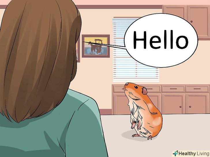Використовуйте голосові сигнали, щоб морська свинка відчувала себе в безпеці. морська свинка повинна асоціювати ваш голос (який вона буде часто чути у себе в клітці) з почуттям комфорту і безпеки.- Тримайте клітку морської свинки в тій частині будинку, де ви самі перебуваєте найчастіше. Так вона звикне бачити і чути вас. Коли спілкуєтеся з вихованцем, регулярно повторюйте його кличку, щоб він почав на неї реагувати.
