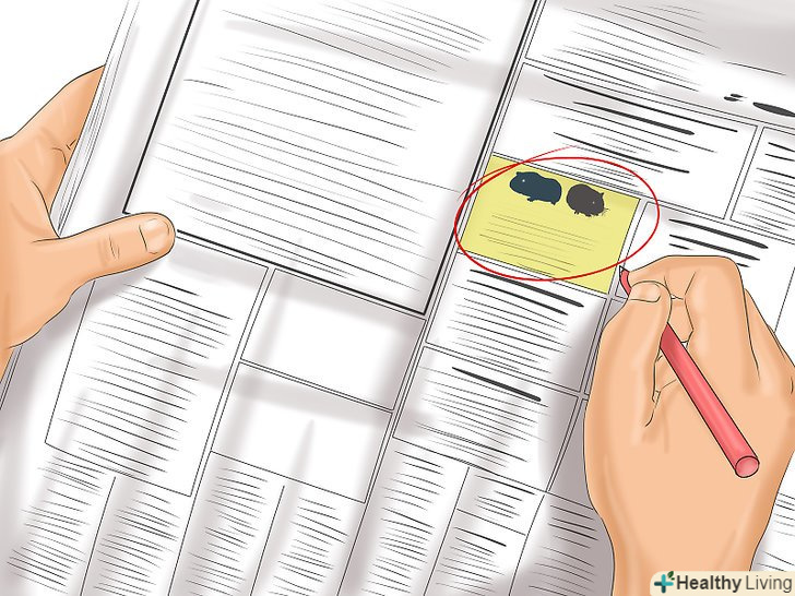 Почитайте оголошення про морських свинках в газетах або на сайтах оголошень, наприклад на Avito. Однак, майте на увазі, що часом там публікують оголошення і недобросовісні заводчики, які продають молодих морських свинок за чималі гроші. Також серед оголошень нерідко можна знайти інформацію про прекрасних ручних морських свинках, яких з тих чи інших причин просто віддають В ДОБРІ руки.- Багато недобросовісні заводчики розводять морських свинок виключно з метою заробітку, не звертаючи ніякої уваги на здоров'я, довголіття і темперамент тварин.
