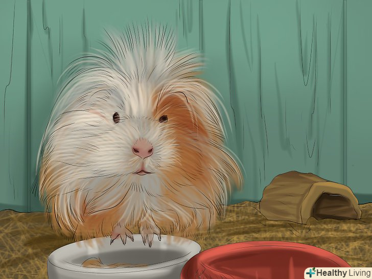 - Придбайте необхідний інвентар для морської свинки заздалегідь. Вам буде потрібно наступне: клітка площею не менше 0,9 м2 для пари морських свинок, поїлка, не менше однієї миски на кожну морську свинку, підстилка (сіно тимофіївки, тонконога або їжаки збірної), гранульований корм, укриття (флісові накидки на кути клітини, будиночки в прохолодний час, тунелі з картону, пробки або хлоропласту з двома відкритими кінцями для забезпечення гарної вентиляції в жаркий літній час).