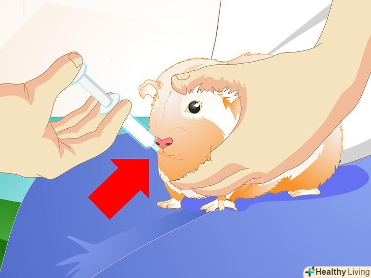 Якщо у морської свинки відсутній апетит, годуєте її з рук. хвороба може призвести до втрати апетиту, і в цьому випадку слід годувати тварину з рук. Через недоїдання морська свинка може перестати мочитися і випорожнюватися. Для успішного лікування необхідно, щоб під час хвороби тварина їла і пило воду. [15]- Дорослі морські свинки повинні вживати близько 6 грамів сухої їжі і випивати від 10 до 40 мл води на кожні 100 грамів своєї ваги. Спробуйте годувати свинку з руки вимоченим у воді сухим кормом з рубаною петрушкою, морквою та іншими овочами. Для збудження апетиту можна також додавати в рідкий корм сік пирію або натуральний журавлинний сік.