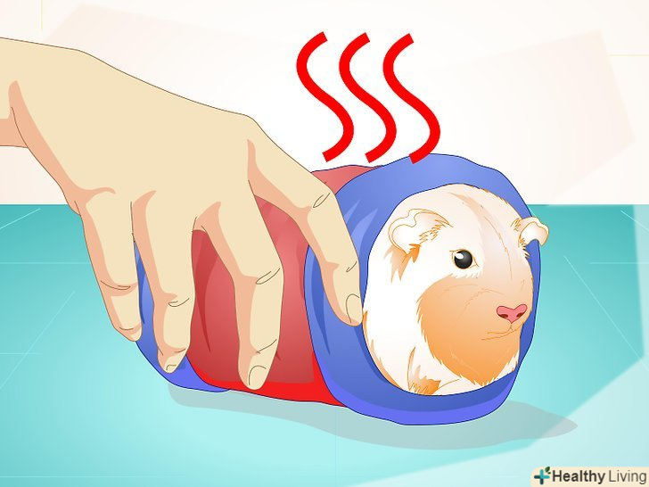 Укутайте свого вихованця, щоб йому було тепліше. під час хвороби морська свинка може відчувати озноб. Для того, щоб полегшити біль в м'язах, укутайте тварина в теплу тканину. Це допоможе морській свинці зігрітися і розслабитися. Слідкуйте, щоб тканина не була занадто теплою і не обтягувала тварина надто туго. [13]- Можна також наповнити пляшку теплою водою, загорнути її в рушник і покласти в кут клітки.