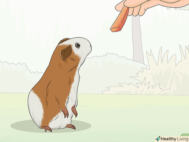 Навчіть морську свинку приходити на ваш поклик. як і більшість інших домашніх вихованців, з певною часткою практики і застосуванням мотиваторів у вигляді частування морських свинок можна навчити приходити на поклик. Обов'язково часто вимовляєте кличку морської свинки і звертайтеся до неї по імені під час годувань і видачі частувань. [2]- Практикувати виконання команди можна за допомогою виймання морської свинки з клітки і розташування її приблизно в метрі від себе. Простягайте при цьому морській свинці її улюблене частування і кличте по імені.