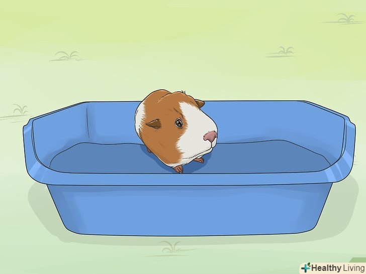 Привчіть морську свинку до туалетного лотка. багато власників морських свинок привчають своїх вихованців користуватися туалетним лотком. Проте, це вимагає досить багато терпіння і практики. Коли ви тільки приступите до навчання морської свинки, будьте готові до помилок з її боку, в такому випадку не кричіть на тварину і не карайте його. Морська свинка буде краще реагувати на позитивні заохочення і похвалу. [7]- Для привчання морської свинки до туалетного лотка встановіть лоток в тому кутку її клітини, в якому вона найчастіше ходить в туалет. Помістіть в лоток пучок сіна і кілька горошин калу морської свинки.
