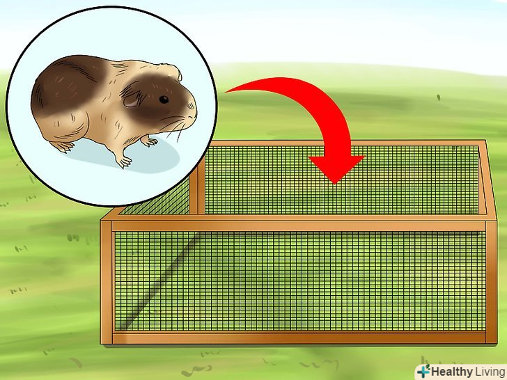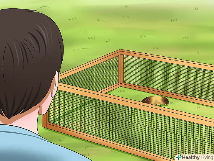 Підготуйте вуличний загін для морської свинки. вуличні прогулянки позитивно позначаться на здоров'ї і благополуччі морської свинки. [12] готові збірні загони для морських свинок дозволять вам забезпечити вихованцеві безпечне проведення часу на вулиці. Вони можуть бути виконані з різних матеріалів, включаючи дерево, ПВХ, нейлон і металеві решітки. Крім того, вони досить легкі в збірці. [13] який би загін ви не вибрали для свого вихованця, ви повинні врахувати кілька важливих моментів. Наприклад, рекомендується закривати загін зверху, щоб захистити морську свинку від хижаків, а також забезпечувати вихованцеві деякий захист від сонця і вітру.- Помістіть в загін кілька предметів, які морська свинка зможе використовувати в якості укриттів і місць для відпочинку, наприклад, будиночки або паперові пакети. Пластикові та картонні тунелі також послужать їй непоганим місцем для відпочинку. [14]