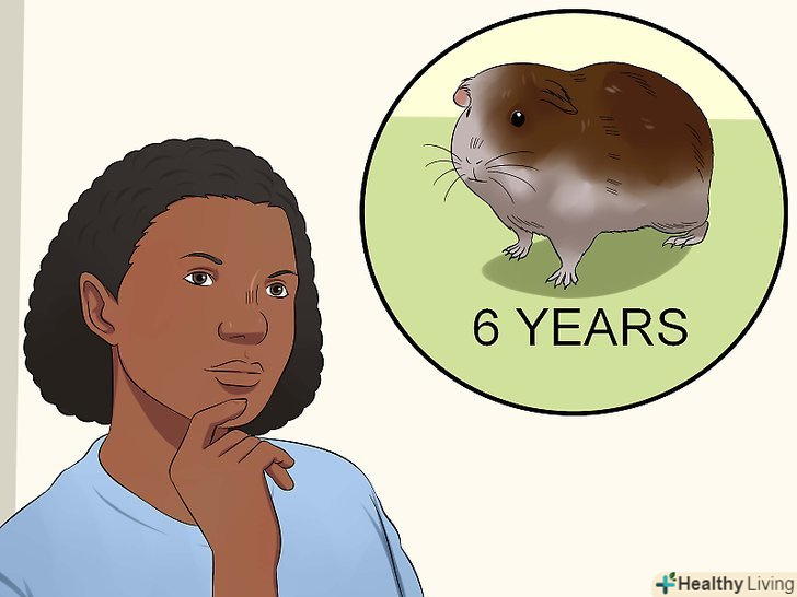 - Морські свинки живуть близько 6 років. Дізнайтеся вік морської свинки на момент покупки, щоб приблизно оцінити, скільки вона проживе. Ви повинні вирішити, чи зможете ви забезпечити морській свинці належний догляд в ці роки. [7]