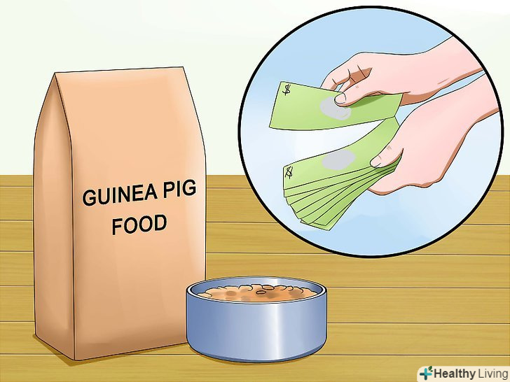 Купіть корм. до моменту, коли ви принесете тварину в будинок, у вас вже має бути підготовлено все необхідне. Спочатку виберіть хороший корм.- Корм для морських свинок продається в більшості зоомагазинів. Важливо купити спеціальний корм для морських свинок, щоб ваш вихованець отримував всі потрібні йому поживні елементи. Крім спеціального корму морські свинки також їдять овочі і фрукти щодня. [11]