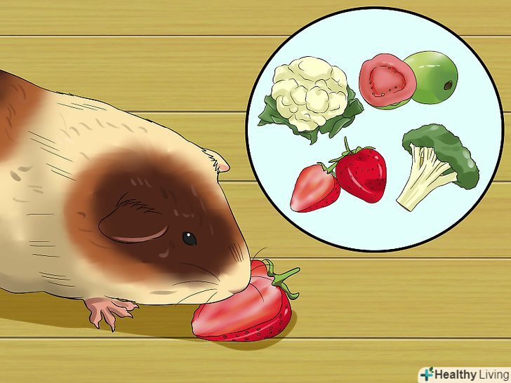 Інші овочі і фрукти можна давати морській свинці в якості ласощів. [11] болгарський перець, брокколі, цвітна капуста, полуниця, зелений горошок, помідори і ківі послужать хорошими джерелами вітаміну С для вашого вихованця.- Пригощайте морську свинку овочами та фруктами кілька разів на тиждень. Оскільки фрукти містять досить багато цукру, не варто давати їх вихованцеві занадто часто. [12]