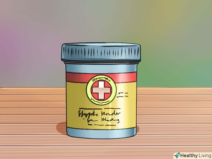 - Насипте невелику кількість (приблизно чверть чайної ложки) кровоспинного порошку на паперову серветку, щоб у вас був швидкий доступ до цього засобу, якщо вам знадобиться зупиняти кровотечу.