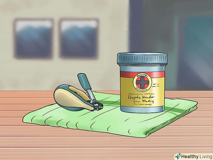 Придбайте кровоспинний порошок або кукурудзяний крохмаль, якщо у вас такого немає. ці речовини швидко зупинять кровотечу, в разі, якщо ви відріже Кігтик занадто сильно. Обидва з них досить ефективні для зупинки кровотечі, так що можете скористатися будь-яким з них. [3]- Кровоспинний порошок зазвичай можна знайти серед засобів для гоління для чоловіків в найближчому продуктовому магазині або аптеці.