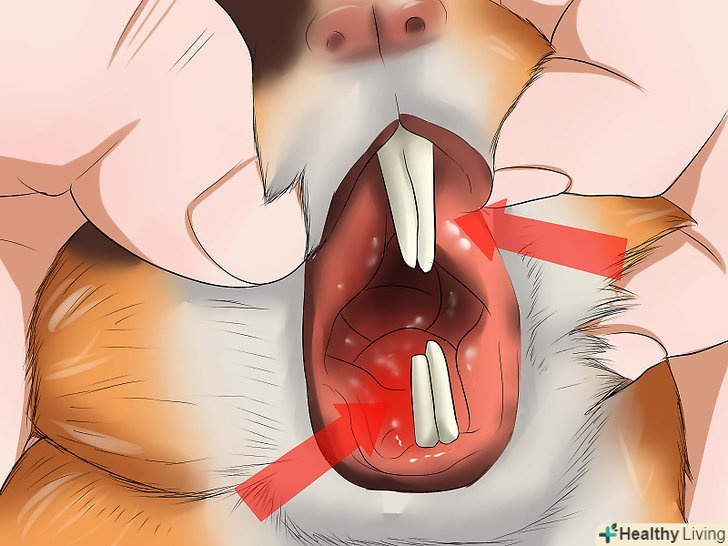 Зверніть увагу на аномальний прикус. у морських свинок постійно ростуть зуби, але в нормальних умовах вони стираються при пережовуванні їжі і зберігають звичайну довжину. Однак спадковість, неправильне харчування та інші причини можуть привести до того, що зуби стануть занадто довгими і/або викривленими, і у тварини сформується неправильний прикус. У свою чергу, аномальний прикус ускладнює або взагалі унеможливлює пережовування їжі, що тягне за собою безліч проблем і може викликати кровотечу і інфекцію в порожнині рота. [12]- Якщо ваш вихованець став їсти менше ніж зазвичай, у нього з'явилося рясне слиновиділення або навіть кровотеча з рота, слід оглянути його зуби. У більшості випадків дану проблему можна вирішити підпилюванням або зрізанням зубів.