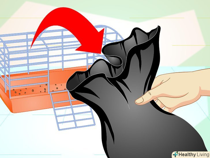 Поставте клітку там, де ви плануєте її чистити і візьміть великий мішок для сміття. акуратно зметіть все в мішок, в тому числі і з огорожі. [11]- Щоб вичистити дуже велику клітку, зручно користуватися лопаткою з отворами. Не використовуйте лопатку кота, собаки або іншої домашньої тварини.
