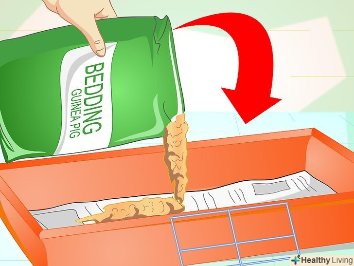 Постеліть на дно клітки нову, чисту газету, а потім покладіть підстилку. підстилка повинна бути 3-8 сантиметрів в товщину.- Ніколи не використовуйте кедрову або соснову стружку. Хоча деревну стружку часто використовують як підстилку в клітинах, насправді вона містить хімічні речовини, які можуть нашкодити вашій морській свинці. [14]