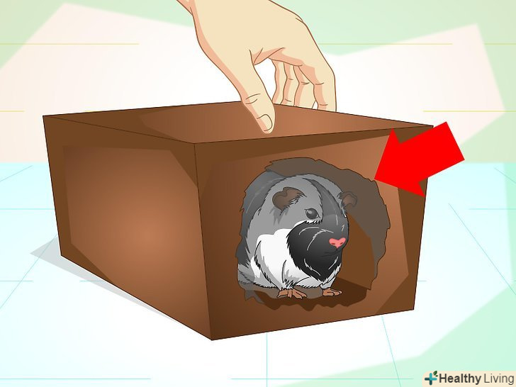 Дайте своїй морській свинці кудись сховатися. для вашого вихованця важливо, щоб в його постійній клітці було місце, де завжди можна сховатися. [6] коли ви витягуєте морську свинку з її будиночка, вона може злякатися. Якщо ви не можете перенести її постійний будиночок, в якому вона ховається, в те місце, куди ви її пересадили, то зробіть невелике тимчасове укриття, вирізавши дно в картонній коробці. [7]