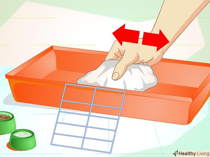 Почистіть клітку там, де це необхідно. видаліть залишки їжі і відходи, почистивши клітку мокрим паперовим рушником там, де це необхідно і переконайтеся, що підстилка всюди суха.