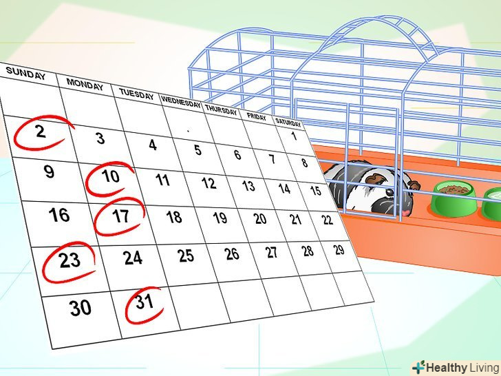 Плануйте проведення ретельних чисток приблизно раз на тиждень. навіть якщо ви щодня підтримуєте чистоту і прибираєте там, де це необхідно, ви повинні ретельно вичищати клітку морської свинки раз на тиждень. Так ви зможете бути впевненими, що морська свинка здорова і щаслива і в її клітці нічим не пахне. [9]