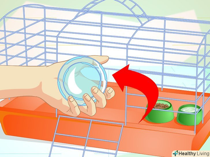 Вимийте пляшку для води і мисочку для їжі. шматки підстилки і посліду часто виявляються в мисці для їжі, так що важливо регулярно мити мисочку для їжі і пляшечку для води. [10]- Позбавтеся від залишків їжі і води. Налийте трохи гарячої води, а потім помийте пляшечку для води і мисочку для їжі. Залиште їх висохнути в раковині, поки ви чистите клітку.