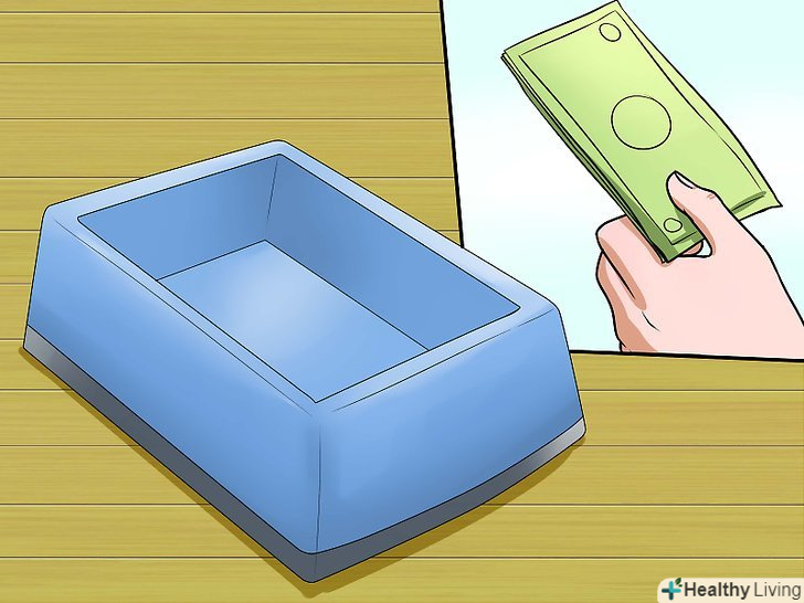 Купуйте туалетний лоток. коли з'ясуєте бажане місце для розміщення туалету, вам буде потрібно купити туалетний лоток, який добре впишеться у відповідний кут. Виберіть лоток, відповідний за розміром для самої клітини і зручний для морської свинки. Лоток не повинен бути занадто маленьким, інакше у морської свинки просто не буде можливості нормально присісти всередині нього, щоб сходити в туалет.- Туалетний лоток, призначений для дрібних гризунів, можна придбати в зоомагазині.