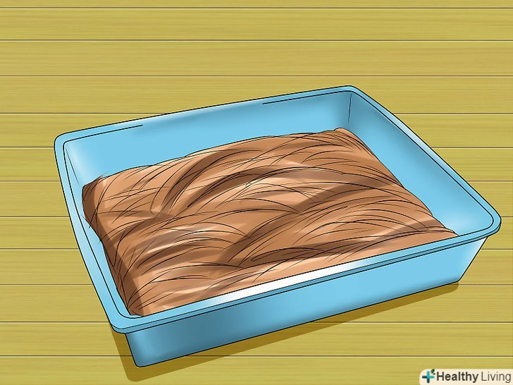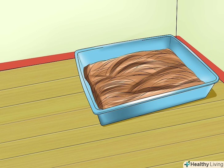 - Можна помістити в лоток трохи кормової соломи, щоб тварина відчувала себе комфортно і мала можливість що-небудь пожувати, поки ходить в туалет. [5]