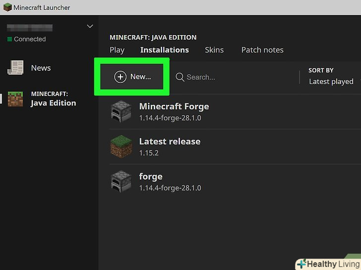 Клацніть по+ New (додати).ця опція знаходиться у верхній центральній частині вікна лаунчер. Відкриється вікно "Create new installation" (додати нову версію).