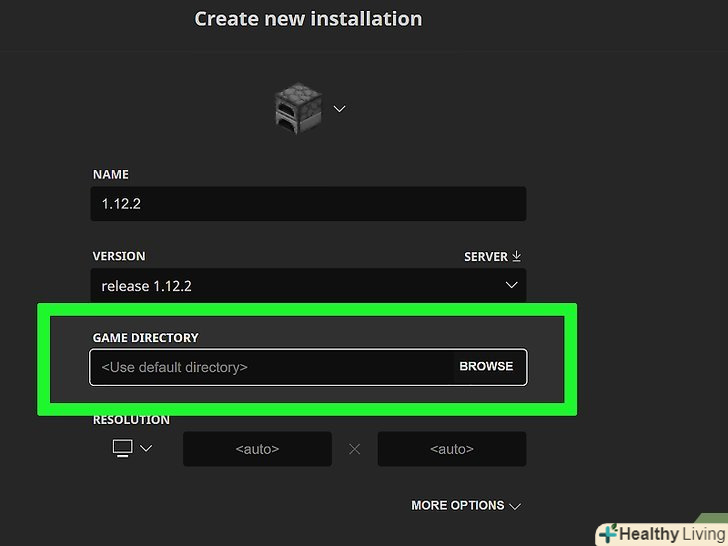 Виберіть версію в меню "Version" (Версія). воно знаходиться праворуч від поля»Ім'я". Наприклад, якщо ви хочете встановити Minecraft 1.13.2, в меню виберіть «1.13.2».[3]- Щоб змінити роздільну здатність екрана для нової версії, введіть потрібні значення в поля "Resolution" (дозвіл).