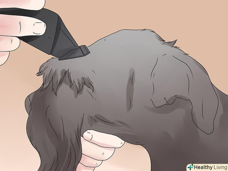 Підстрижіть голову і морду цвергшнауцера. готова стрижка буде виглядати на зразок прямокутника.- Коротко підстрижіть все волосся вище брів до тильної сторони голови.