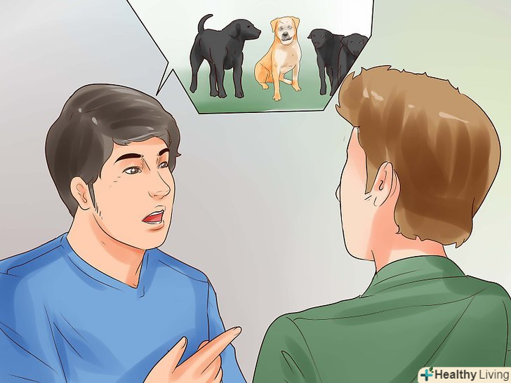 Розмовляйте з будь-якою неспокійною собакою твердим, спокійним голосом. Дайте їй сидіти або стояти. Вереск, крики і крики можуть ще більше налаштувати собаку проти вас. Не посміхайтеся і розмовляйте доброзичливим, втішним голосом.- Використовуючи голосові команди, зробіть свій голос настільки низьким, наскільки це можливо. Дами, постарайтеся імітувати чоловічий голос.