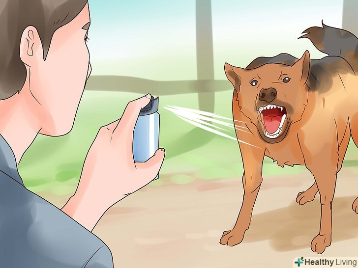 Захистіть себе, взявши з собою на прогулянку захисні засоби.- Перцевий спрей, спрямований в очі нападаючої собаці, може зупинити її атаку. Однак, зверніть увагу на Напрямок Вітру, коли будете розпорошувати спрей, так як він може потрапити назад на вас.
